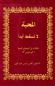 هذا الكتاب شرحٌ لرسالة المحبّة كما وردت في (1 كورنثوس: 13). "يشبّه الكاتب كنيسة اليوم بكنيسة كورنثوس في القرن الأوّل". ثمّ يتأمّل بطريقةٍ تفسيريّةٍ في فضائل المحبّة مقسّمًا هذا الأصحاح إلى ثلاثة أقسامٍ: 1 ـ أهميّة المحبّة (1ـ3). 2 ـ صفات المحبّة (4ـ7). 3 ـ أبديّة المحبّة (8ـ13). "والنموذج العظيم للمحبّة هو المسيح، المحبّة المتجسّد. لو أنّك قرأت صفات المحبّة كما جاءت في هذا الأصحاح وحذفت كلمة "المحبّة" ووضعت كلمة "المسيح" بدلها، لوجدت المعنى واضحًا وصحيحًا".
